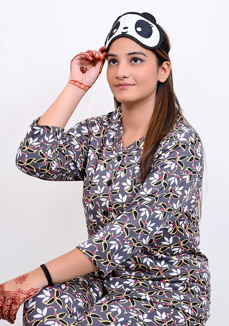 Designed as a front-open nightsuit with 3/4 sleeves, it provides the perfect balance of style and warmth, making it an ideal choice for pre-winter evenings. The fine cotton-lycra blend with 4-way stretchable lycra ensures unrestricted movement, a smooth feel on the skin, and long-lasting durability.